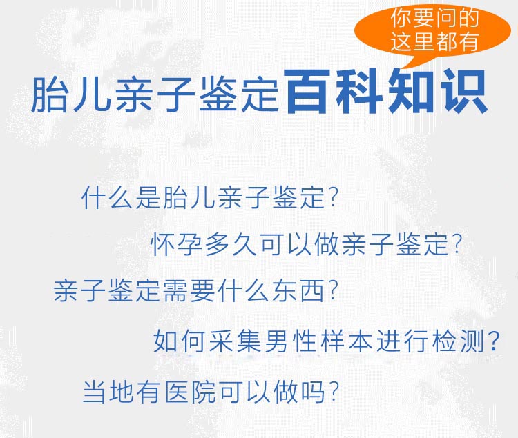 怀孕亲子鉴定只需要孕妇10ml血液,父本提供8种样本任意一种样本即可鉴定.【男性样本采集技巧】